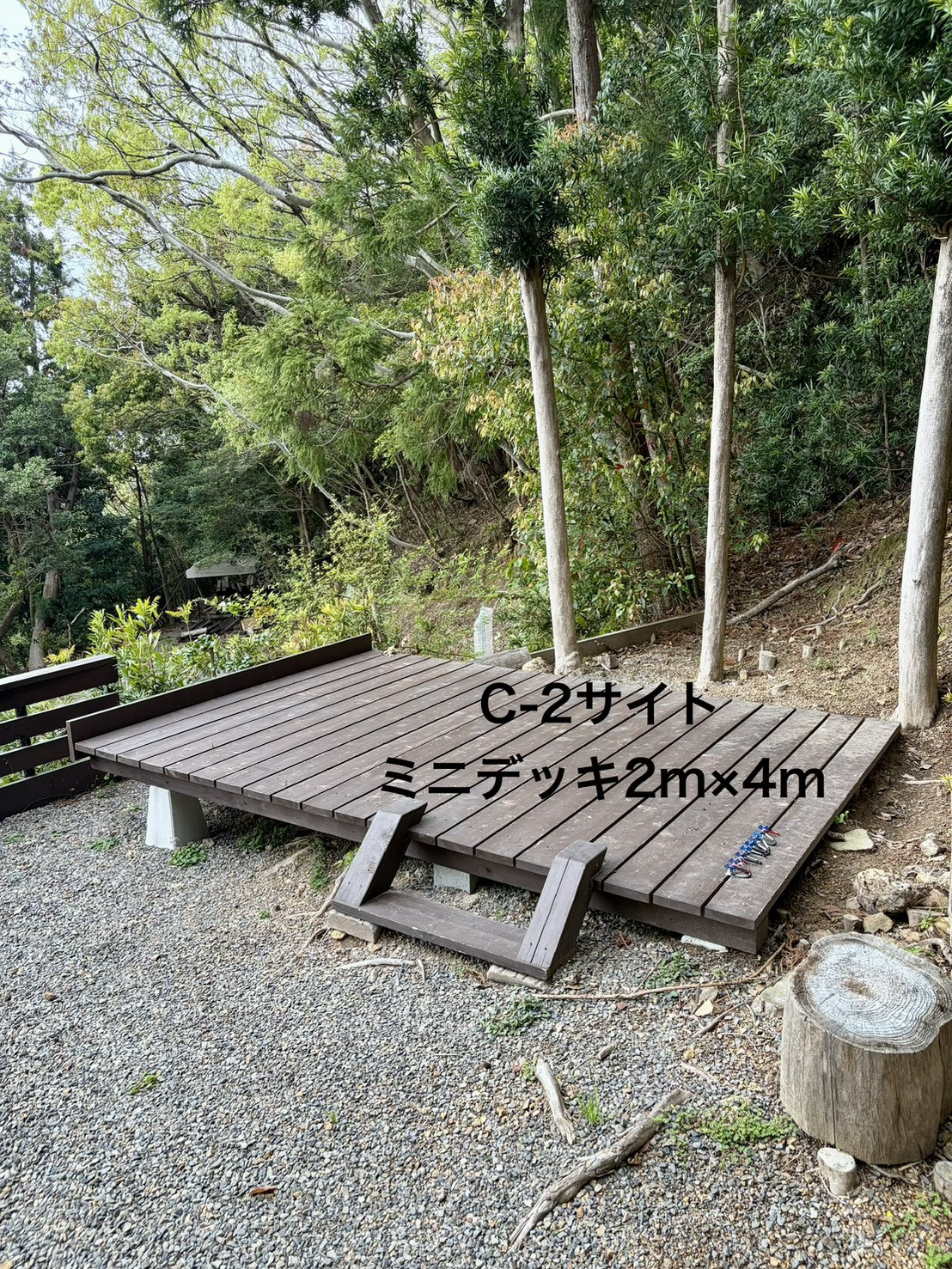 ツリーハウスサイトでは、テーブル、イスが完備されています。
